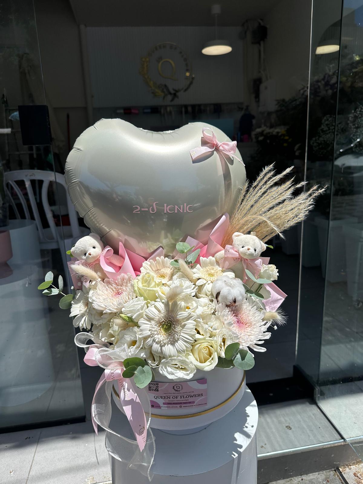 A delicate flower arrangement available in colors suitable for both baby boys and girls. Can also be customized for any special occasion, not only for newborn celebrations.
