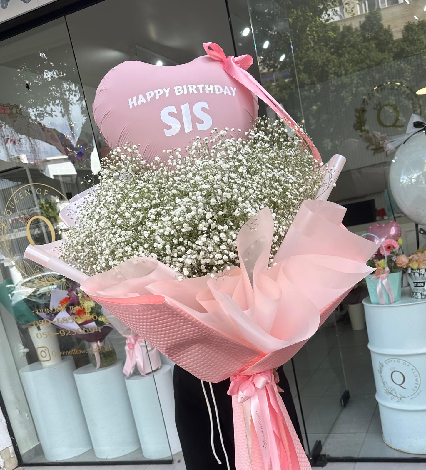 Gypsophila Bouquet with Elegant Wrapping & Personalized Balloon